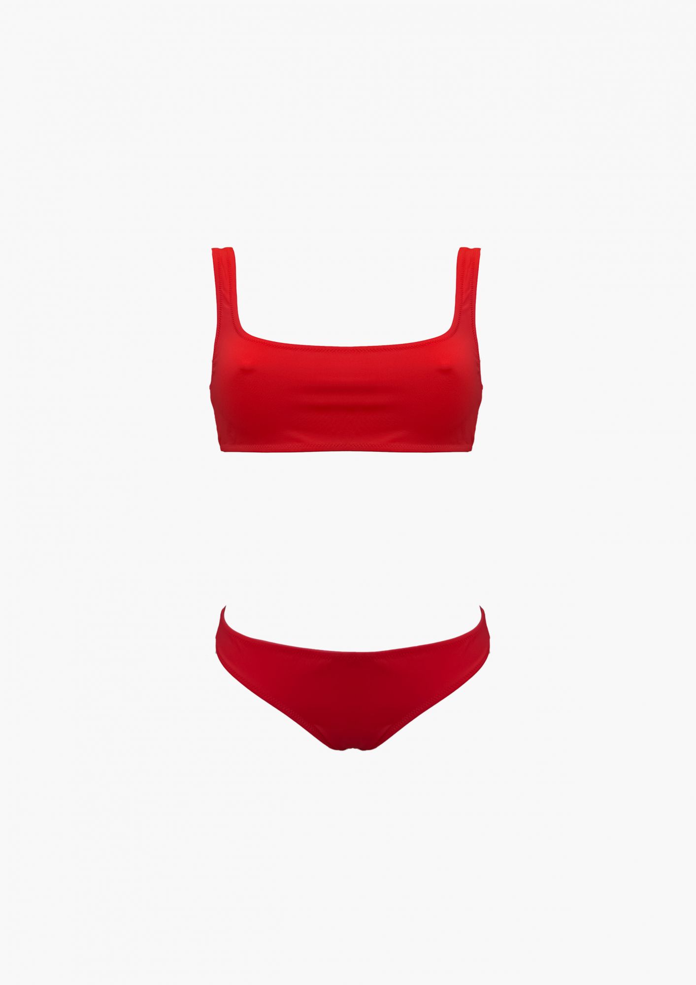 A blend of sporty minimalism and feminine strength. Its cultural imprint was sealed when supermodel Helena Christensen wore it in Marie Claire 1994, capturing the era’s bold, effortless energy. With a cropped tank-style top and streamlined bottoms, it offers a fresh alternative to the traditional triangle bikini.