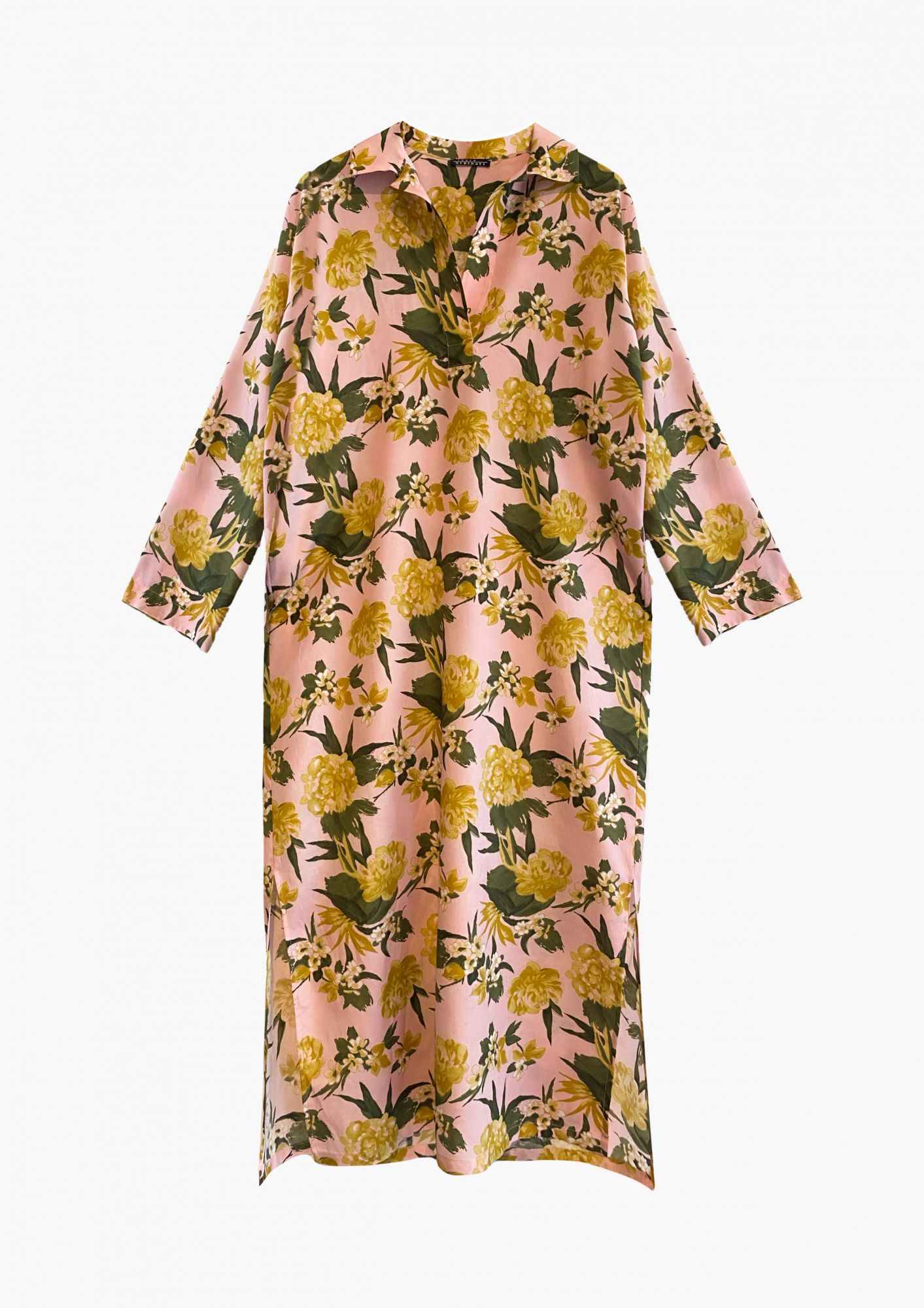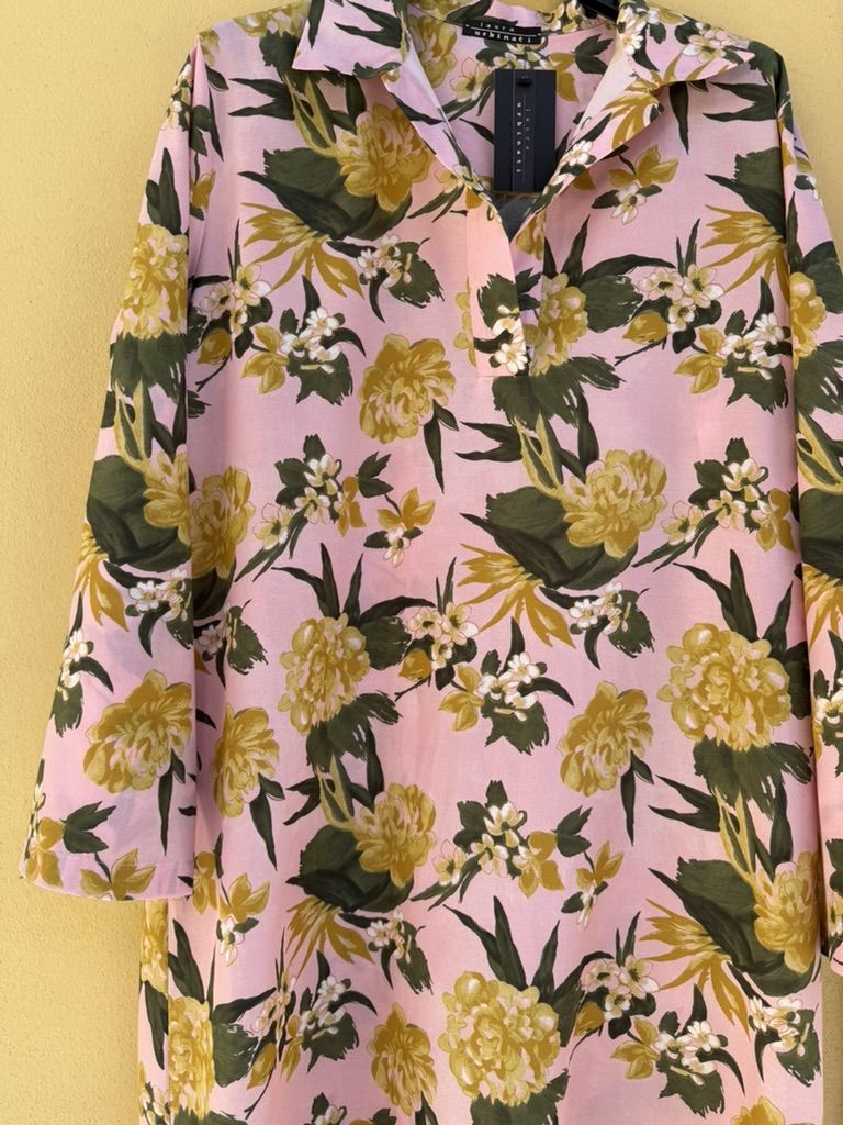 SILK/COTTON MUSLIN - HAWAII PRINT - ROSE/YELLOW