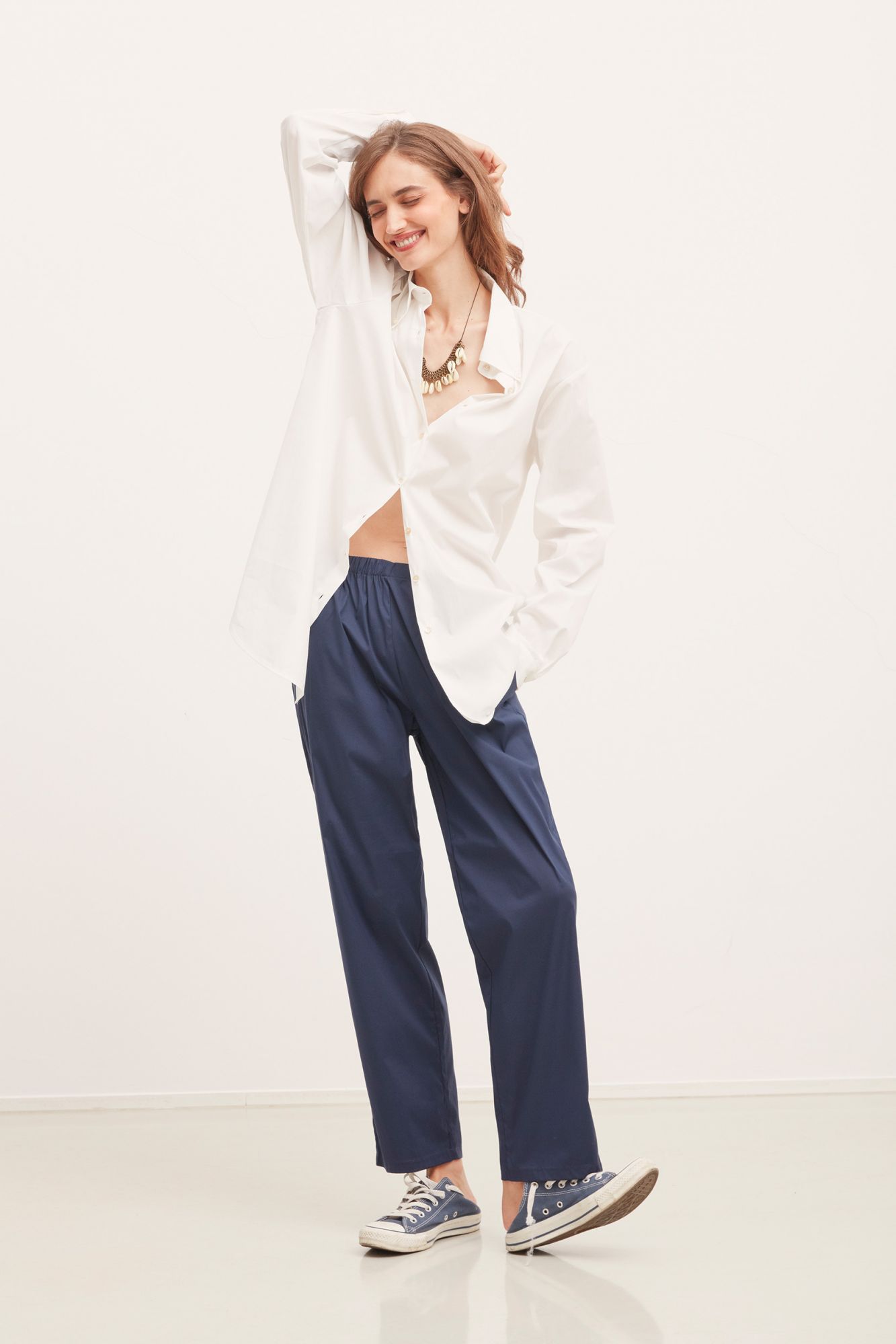WIDE LEG ELASTIC WAIST PANTS